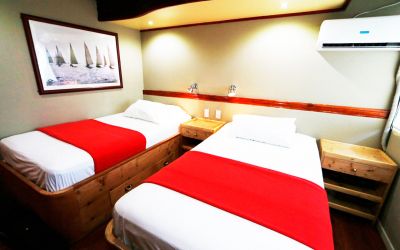 - Accommodations: 16 Passengers in 6 double cabins with twin beds and 2 suitsl with matrimonial bed and private Bathroom
